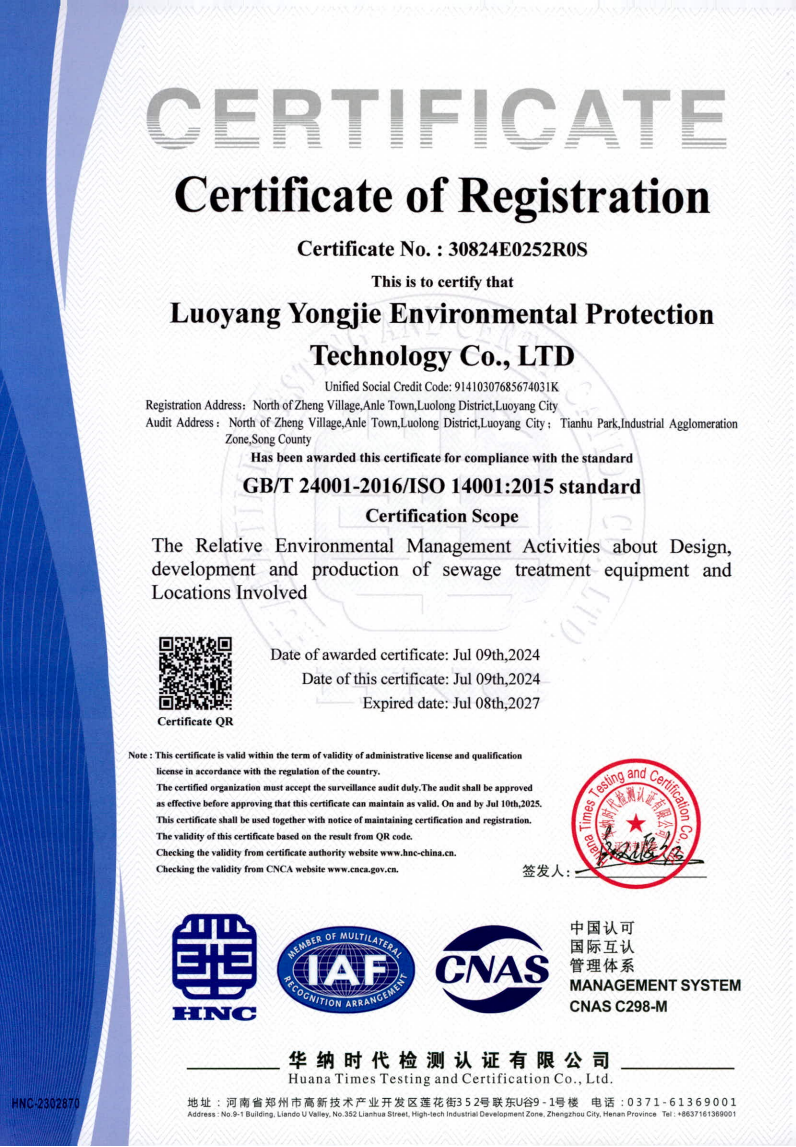 洛陽永潔水處理設(shè)備廠家